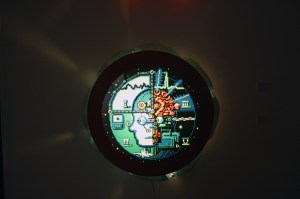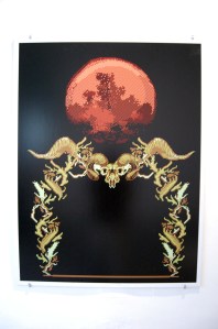 Aaron is also an undergraduate student, primarily he works with sculpture; but Aaron is the kind of interdisciplinary student we love to have in the Division of Art and Design. His show was called “somnwhere” and was made up of digital prints shown through light boxes that Aaron made. The gallery was a lot darker than the pics show, but my camera took in A LOT of light. So this isn’t the best representation of what the gallery looked like, but you can still get a sense of it.