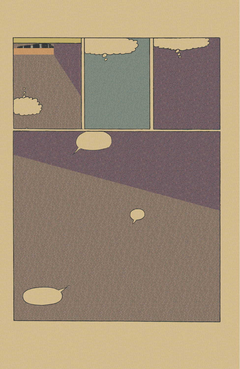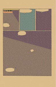 Like my earlier black and white prints of entire comic book pages, I want the viewer to become aware of the composition of and between each page and how it relates to the story. The difference now being the inclusion of color, which reveals color compositions throughout the book.