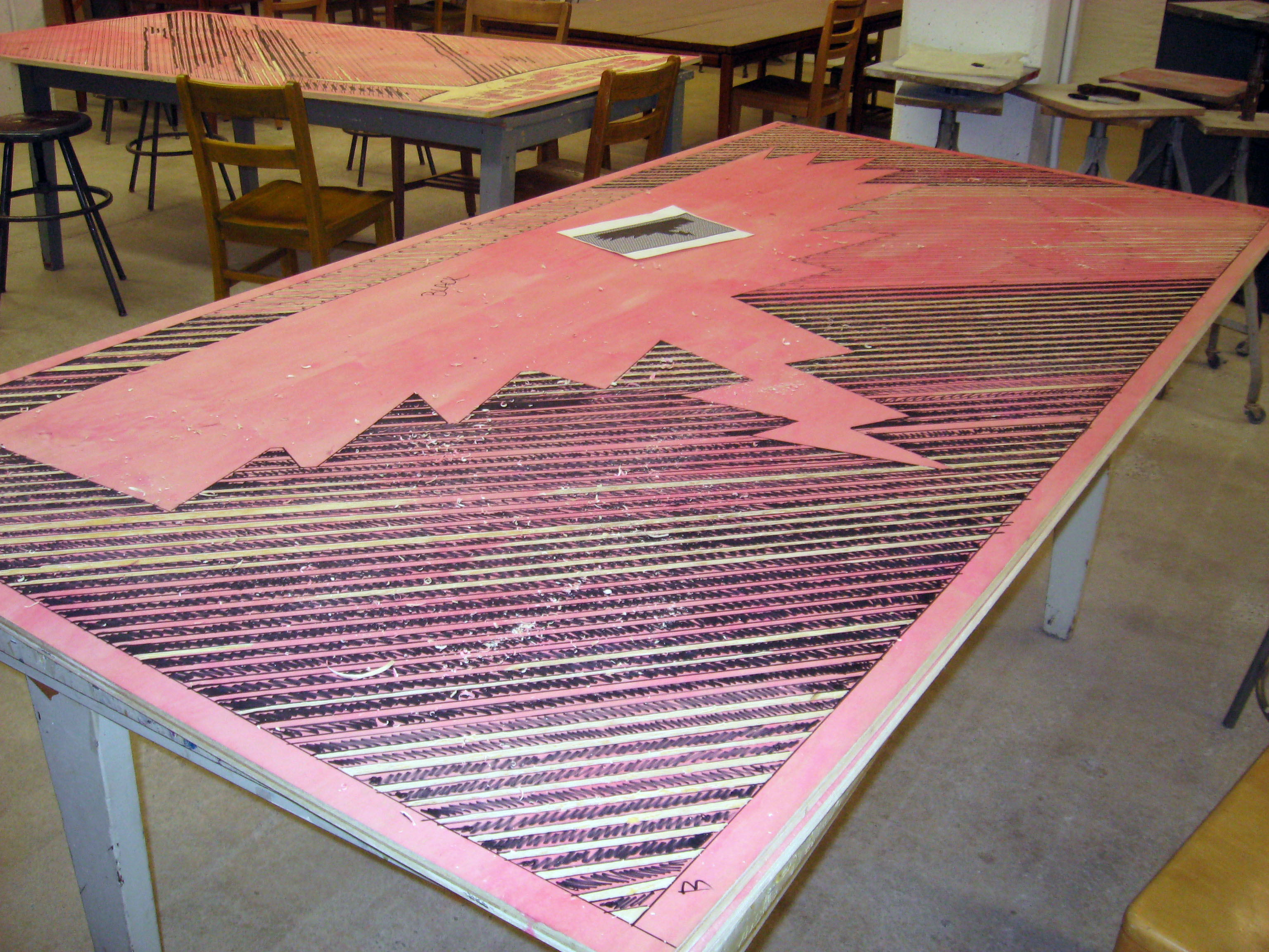 From Feb. 16th to the 18th I was in Roanoke, Virginia to participate in the Marginal Arts Festival. Hollins University Porfessor Jennifer Anderson asked Alan Skees and myself to make some 8’x4′ woodcuts and steamroll print them during the festival.