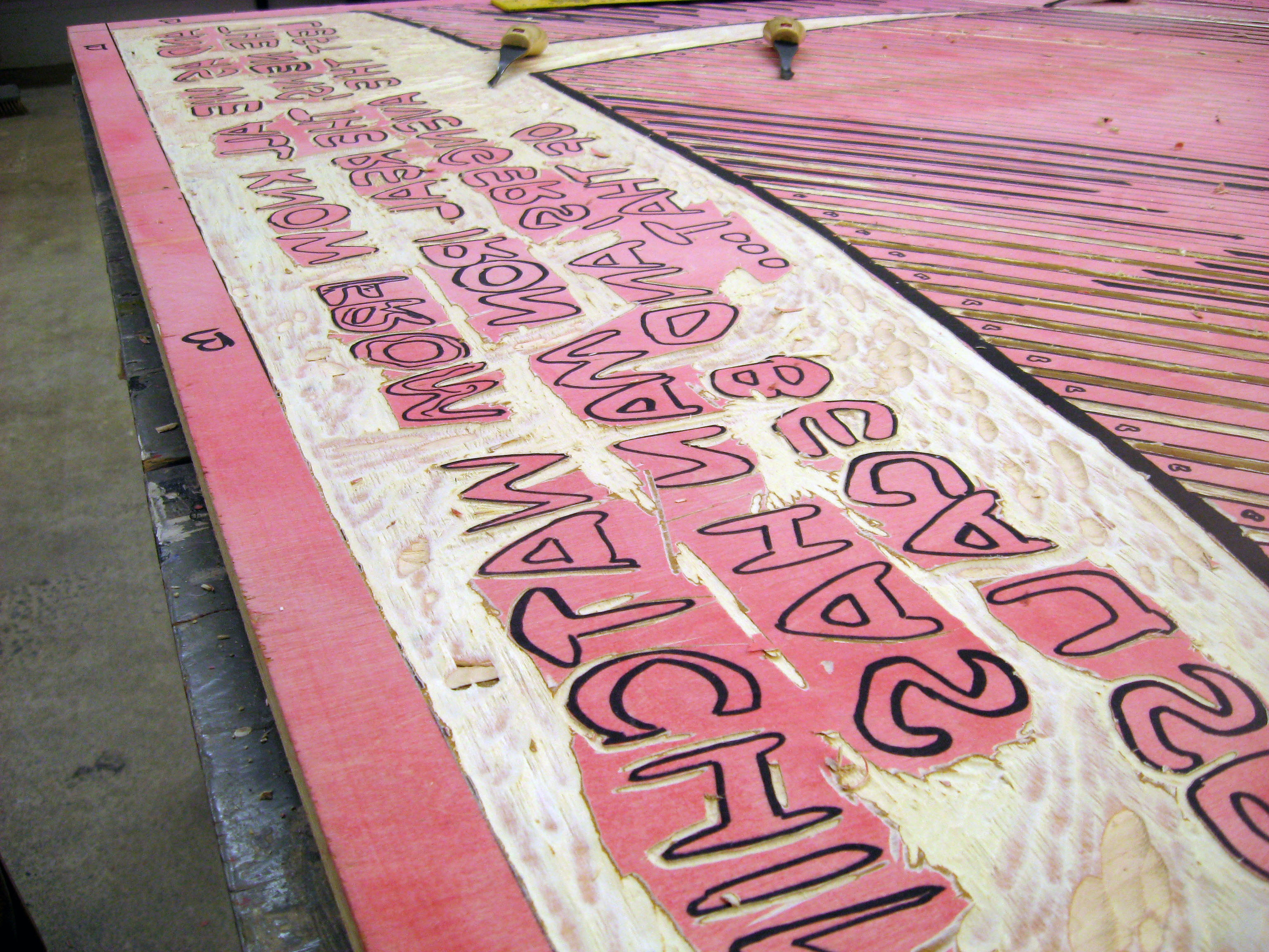 I’m really loving these woodcuts, Joe. I’m impressed by the font — it turned out so well in this medium!