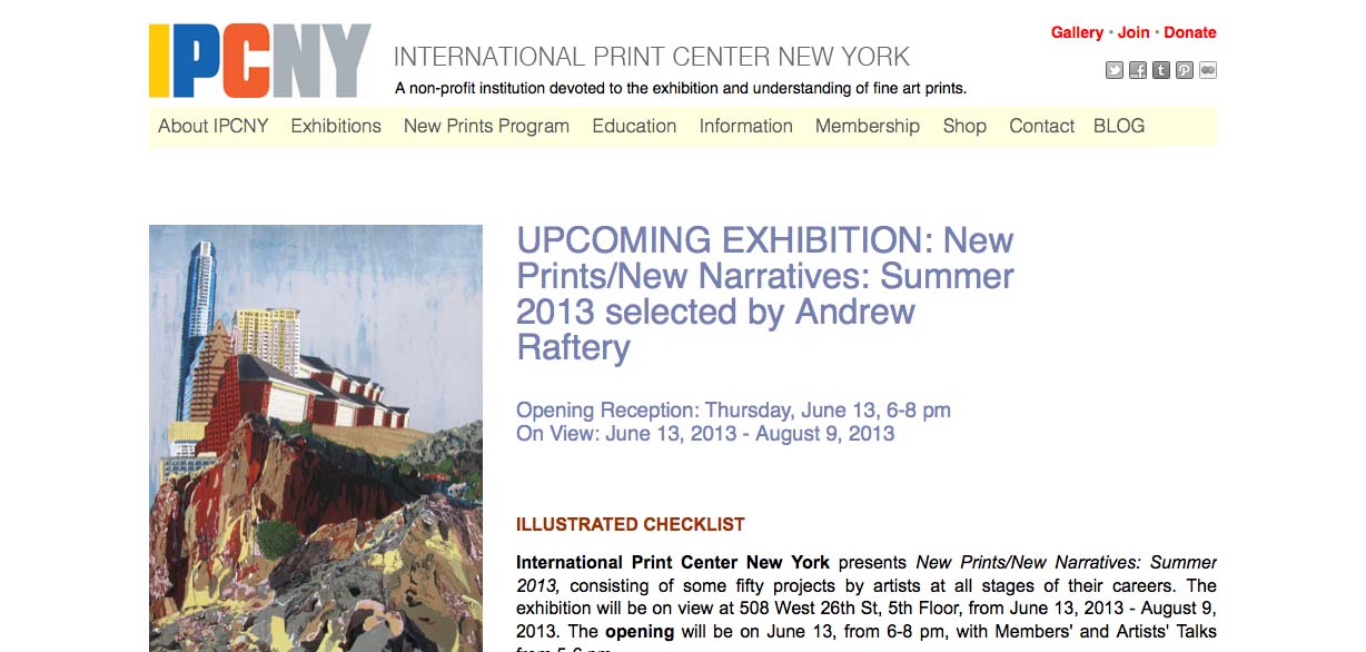 Recent work of mine will be on display in an exhibition titled “New Prints/New Narratives” at the International Print Center New York.