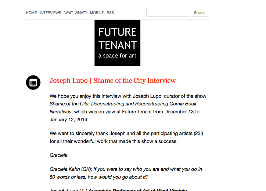 On January 12, 2014 the group exhibition for Future Tenant “SHAME OF THE CITY: Deconstructing and reconstructing comic book narratives” closed.