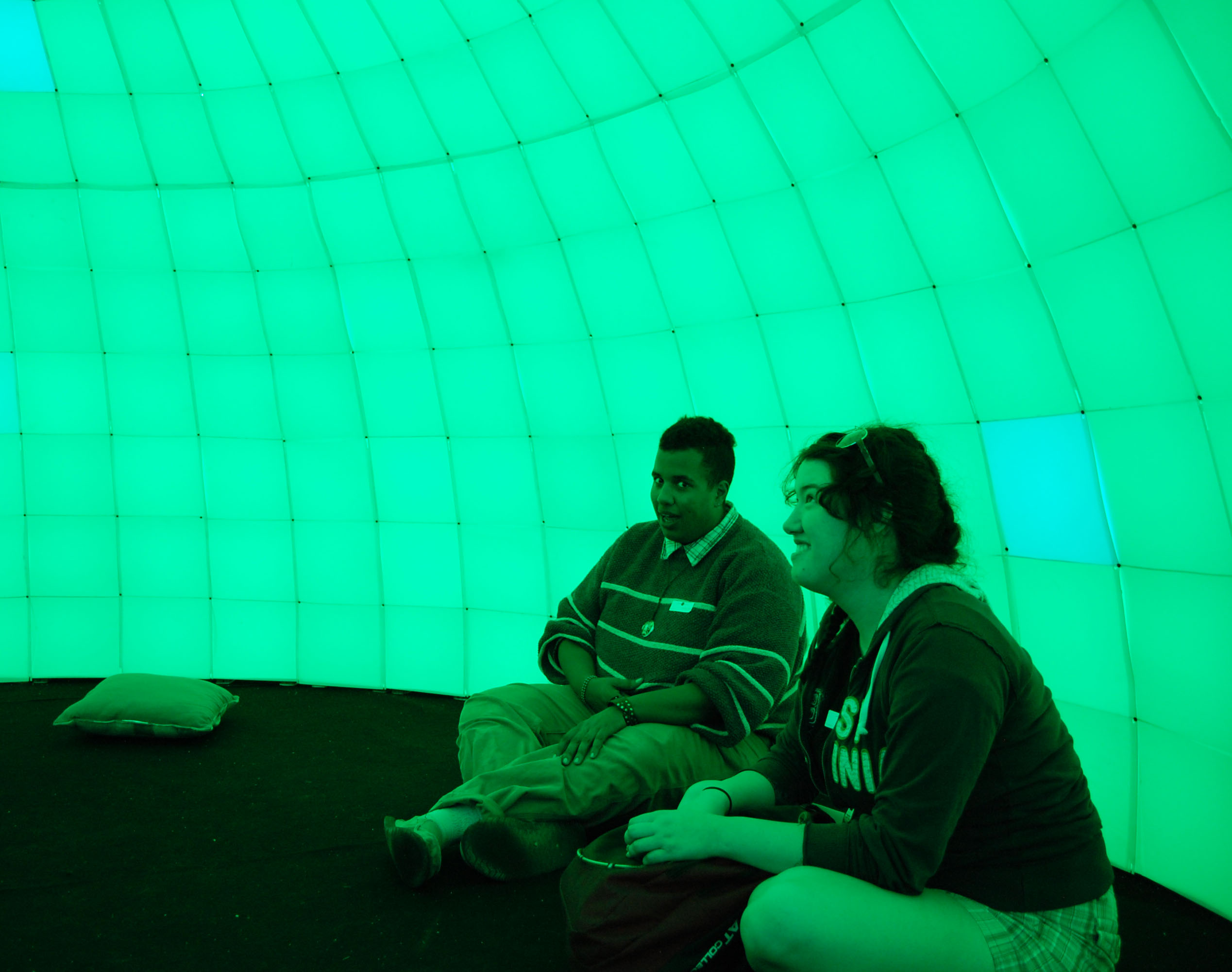 We sat inside this “igloo” made of corrugated plastic and LED lights that changed color with a timing system.
