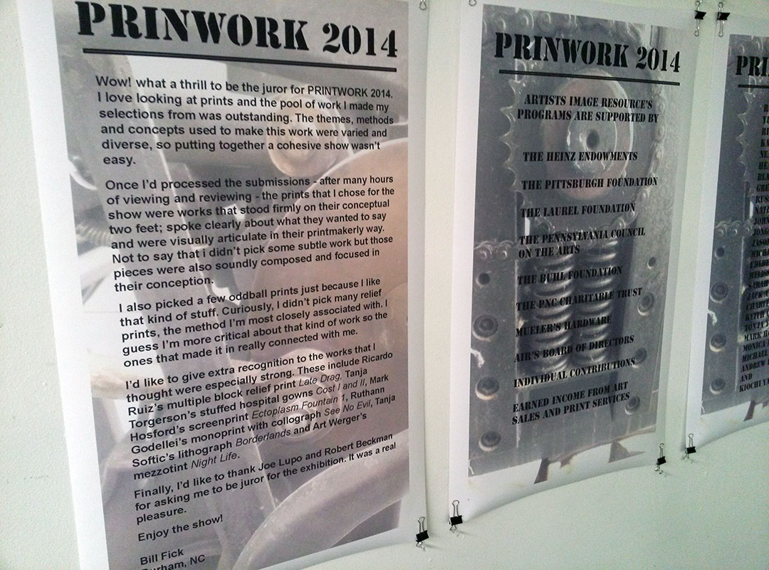 This weekend I headed up to Pittsburgh to attend the opening reception for the PRINTWORK 2014 juried show at Artists Image Resource.