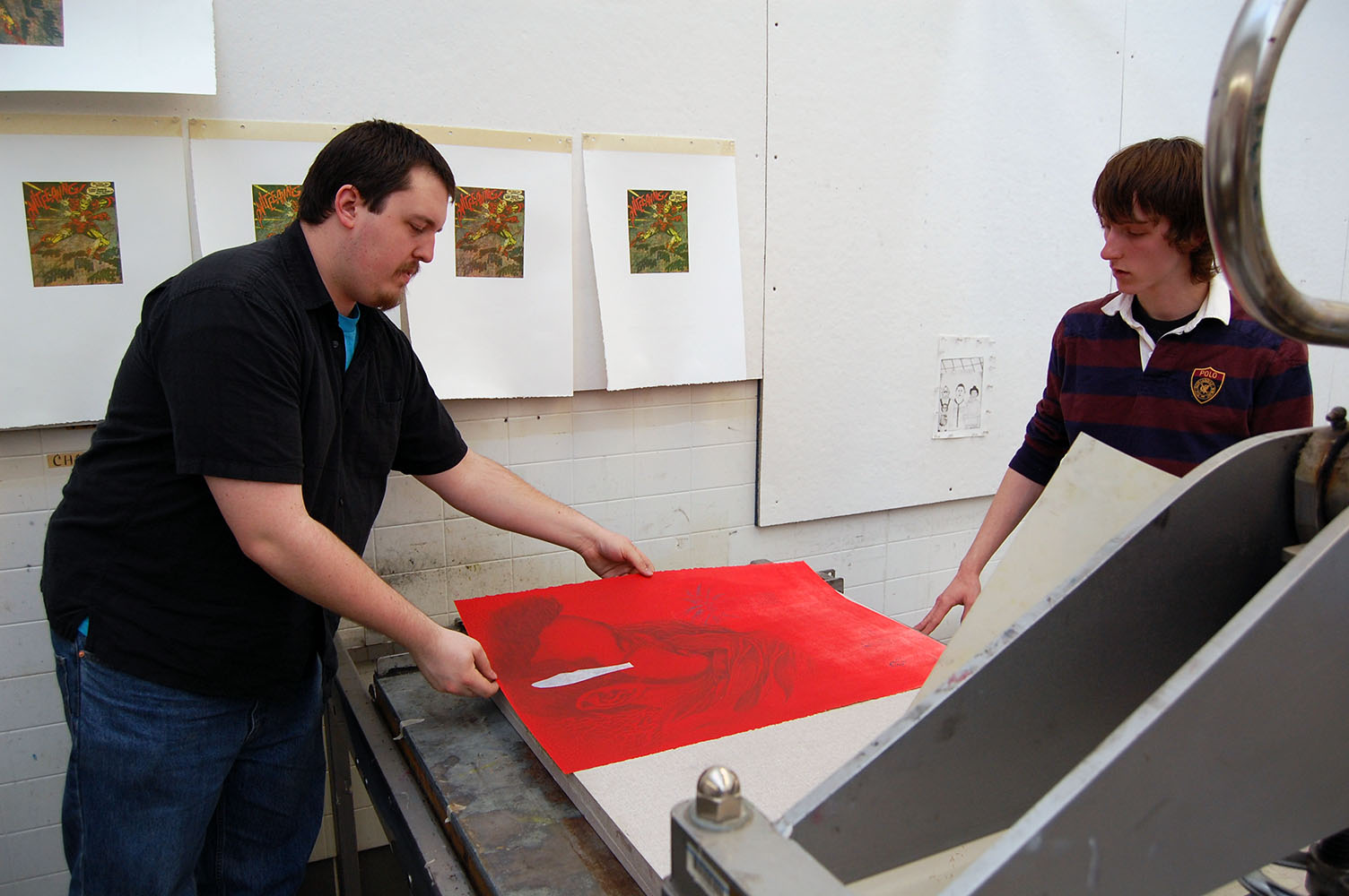 On Thursday, March 12 Nashville artist Jerry Phillips visited WVU. Current MFA printmaking student Jacob Guzan organized the visit.