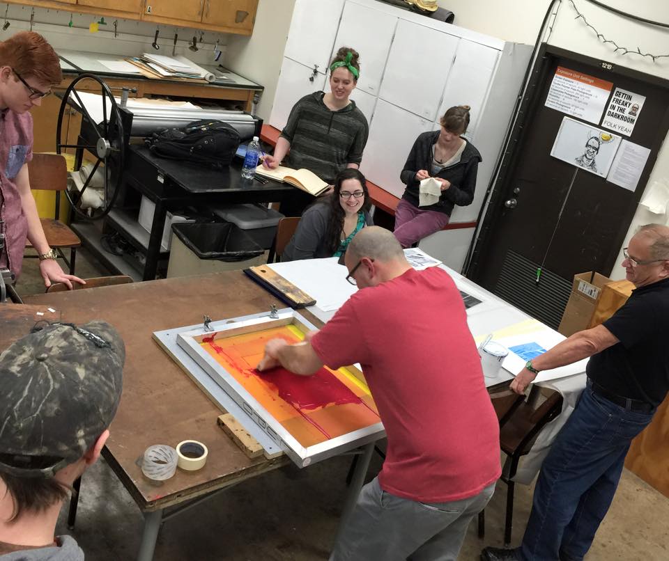 It was a terrific and jam packed visit. During my time there, I was able to have a group crit with an intro to print class, have one on one crits with advanced students, print an edition, and see some really cool sights around Akron. Thank you to Charles and all his students for being such wonderful hosts! I had an absolute blast!