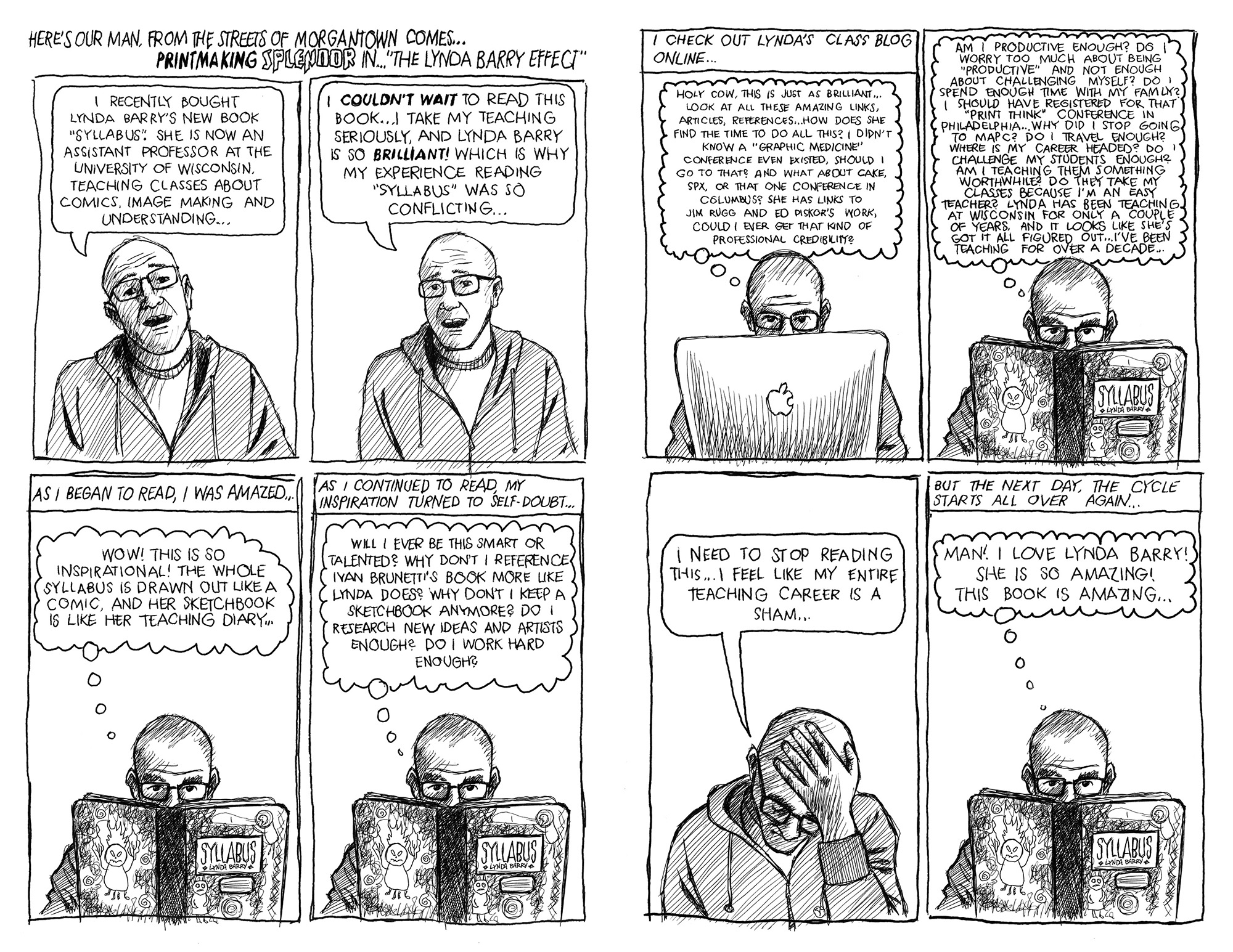 Below is my latest installment to my erratically published autobiographical comic “PRINTMAKING SPLENDOR”, titled The Lynda Barry Effect.
