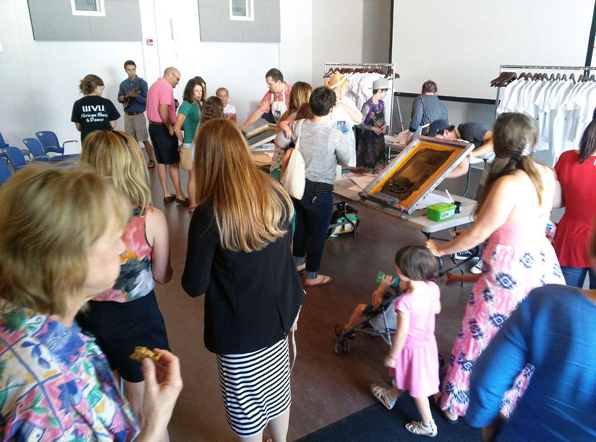 It is so exciting to have this resource available for our students, faculty, and Morgantown residents. There were many festivities planned for the opening week of the museum, and on Saturday the WVU Print Club participated in Family Day, printing t-shirts on demand.