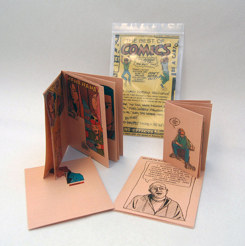 “Based on Aspen Magazine (1965-1971) Intermission uses the space of the Thematic Print Portfolio to explore (as creator Phyllis Johnson described) “culture along with play.” Aspen Magazine was an innovative publication that created a unique approach to the common magazine by combining commercial media with packaging and interactive trends found in Fluxism and Pop Art. Using Aspen Magazine as a template, Intermission asks participating artists to create original editions of ephemera or multiples including postcards, zines, comics, pamphlets, posters, and other graphic works. Participating artists were selected based on their research/connection to Print as both an Art and a Design medium, as well as their belief that ephemera are influential graphics. Intermission is not intended as a traditional edition. We encourage submissions in a variety of formats including ephemera, posters, audio, video, kinetic and tactile multiples, and other forms that defy definition.”
