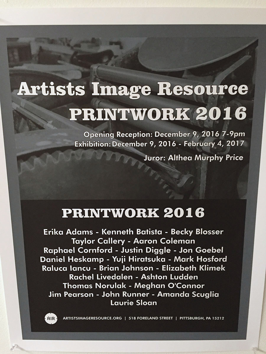 This year’s PRINTWORK juried exhibition at Artists Image Resource looks great! Juror Althea Murphy-Price did a fantastic job!