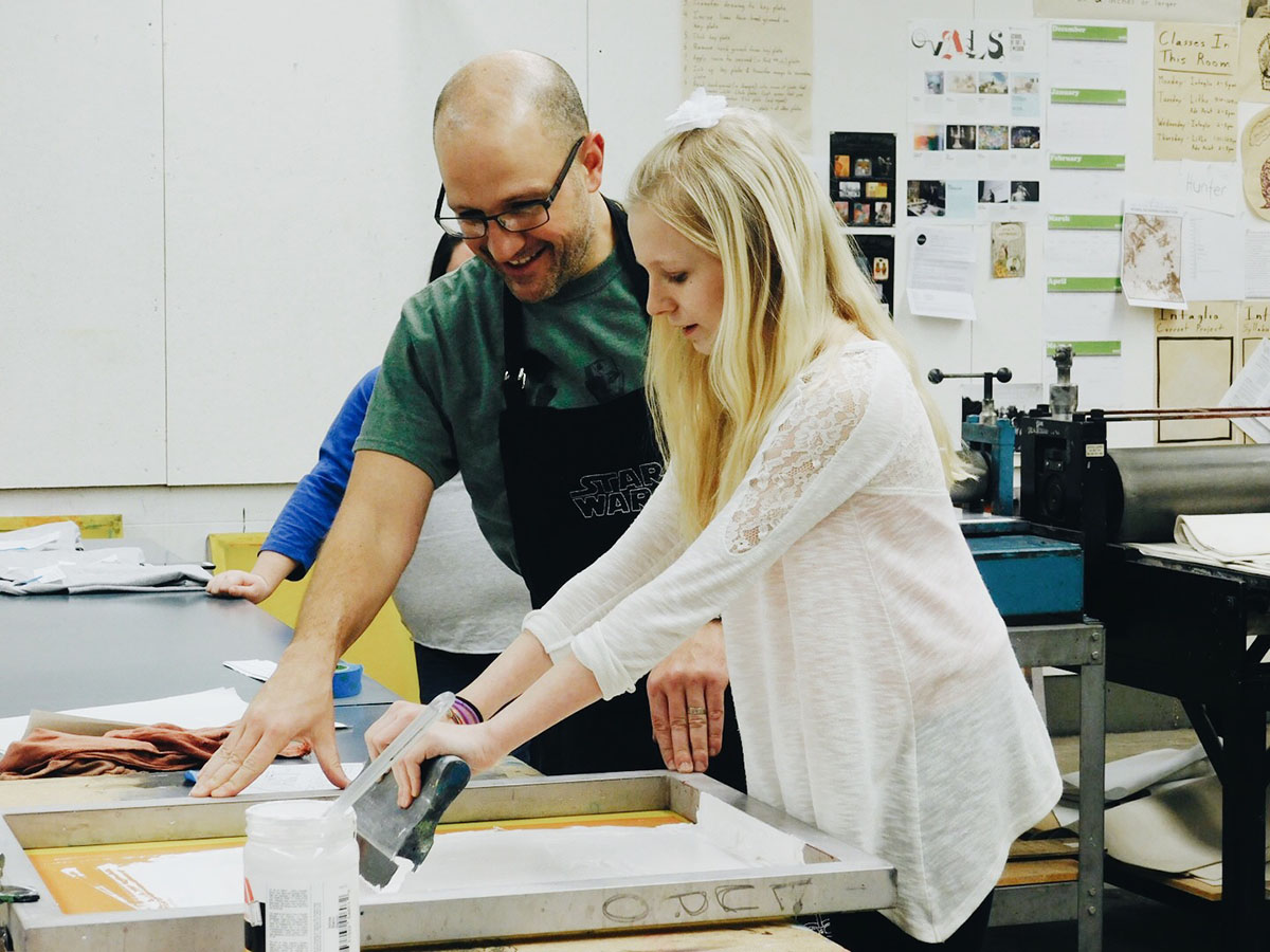 Last Friday, 4th and 5th grade students with the Mylan Elementary Art Club came over to the printshop to print their own t-shirts.