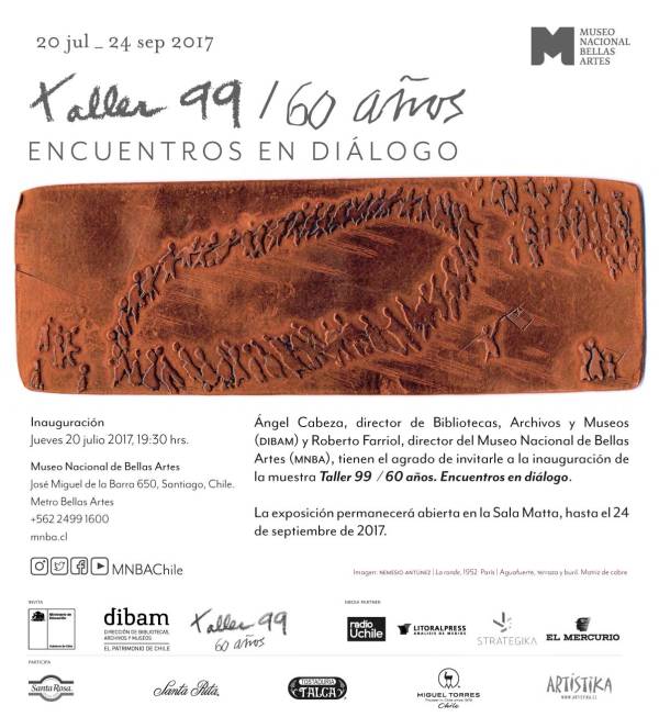 I am thrilled to say that my work will be included in the exhibition "Taller 99/60 años: Encuentros en diálogo” at the Museo Nacional de Bellas Artes in Santiago, Chile. The exhibition is a celebration of 60 years of the Taller 99 Atelier in Santiago. The exhibition runs from July 20 to Sept. 24 2017.... Continue Reading →