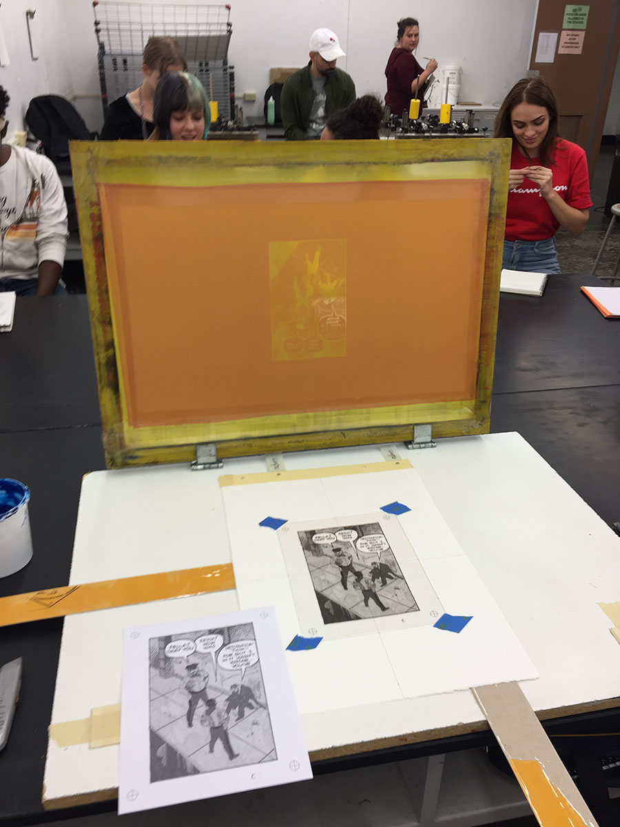 On Tuesday, Oct. 24, I was at the University of Pittsburgh as a visiting artist. Pitt Printmaking Professor Lenore Thomas asked me to come to her shop and give a CMYK silkscreen demo. I’ve known Lenore for a while now, and it was great to be able to meet her students and see the shop. I’m always up for an excuse to come to Pittsburgh!