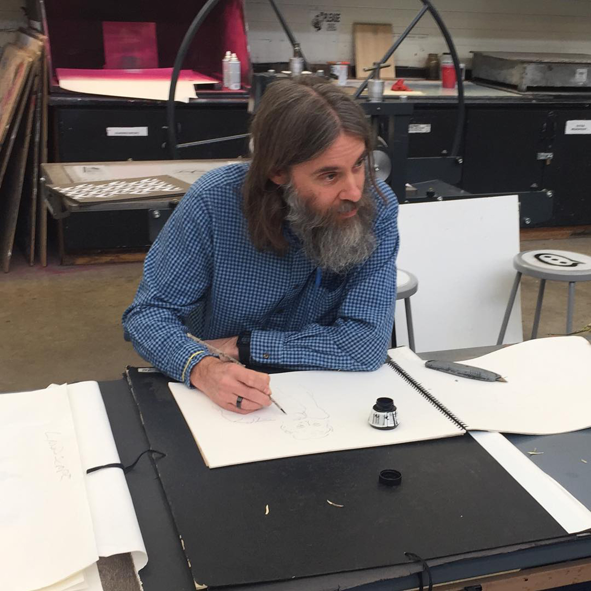 Today we were so lucky to have a visit from Professor of Art Benjy Davies! Benjy teaches at the University of Rio Grande in Ohio. He brought his great sense of humor, kindness, and wisdom as he discussed his career making lithographs, taught us how to draw with sticks, and gave a demonstration about printing with Sintra plates. It was a jam packed day and it was so much fun! A BIG THANK YOU to Benjy for taking the time to share his knowledge with us! It is always such a great pleasure spending time with Benjy.