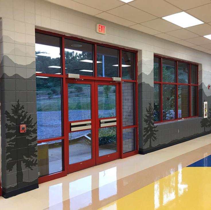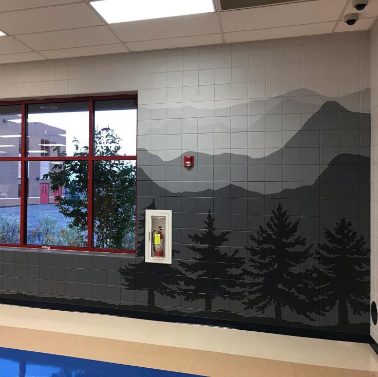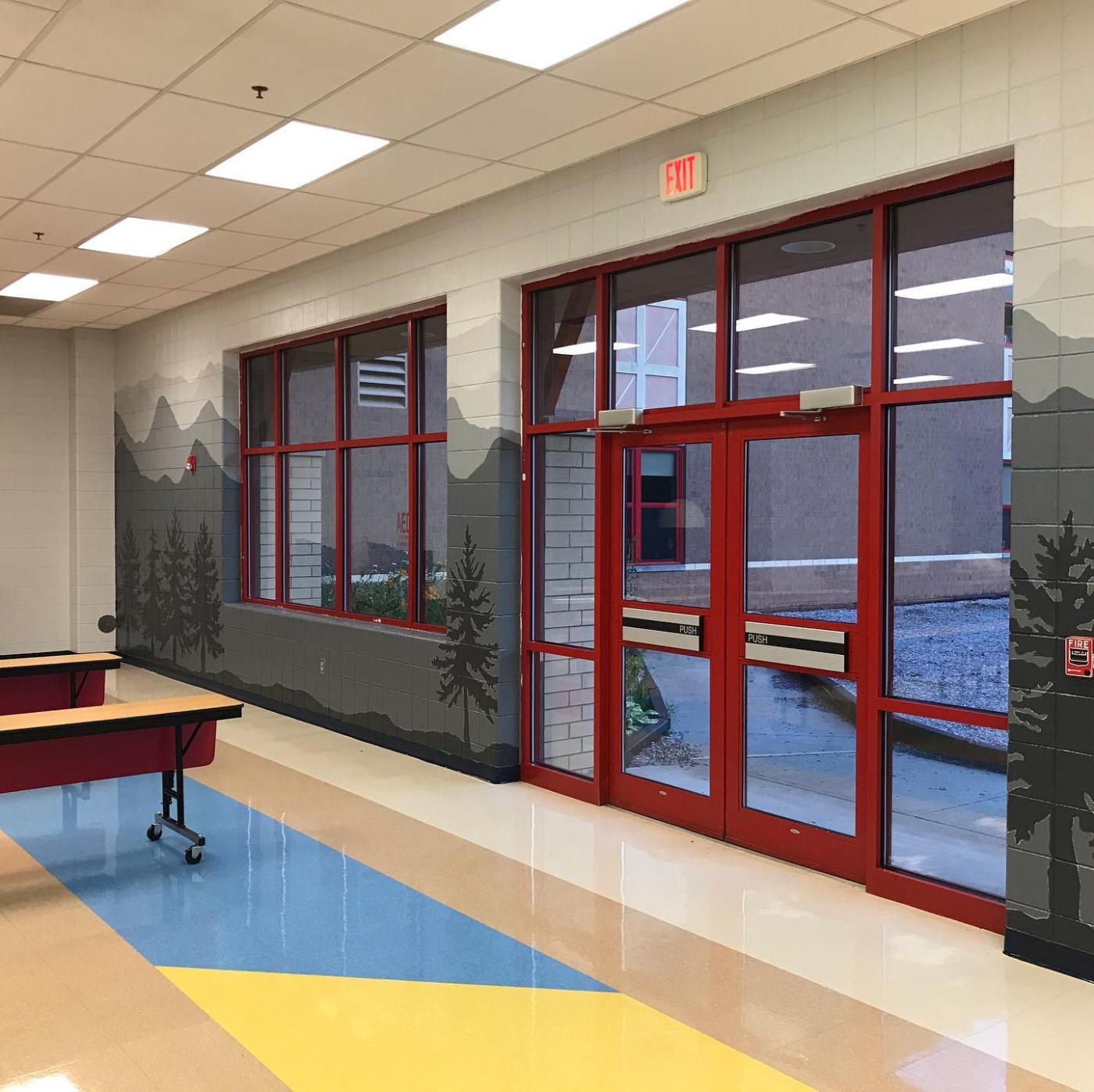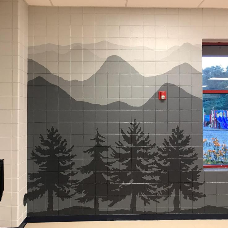 This summer I collaborated with Mylan Park Elementary Art Teacher Sarah Billotti on this mural that spans one side of the school cafeteria.