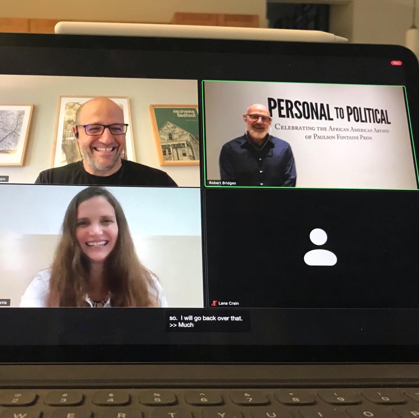 Thank you so much to the Art Museum of WVU for asking me to participate in a Lunch Time Look today with Robert Bridges and Heather Harris. I was thrilled to talk about the exhibition “Personal to Political: Celebrating the African American Artists of Paulson Fontaine Press” and specifically about my new favorite artist David Huffman.