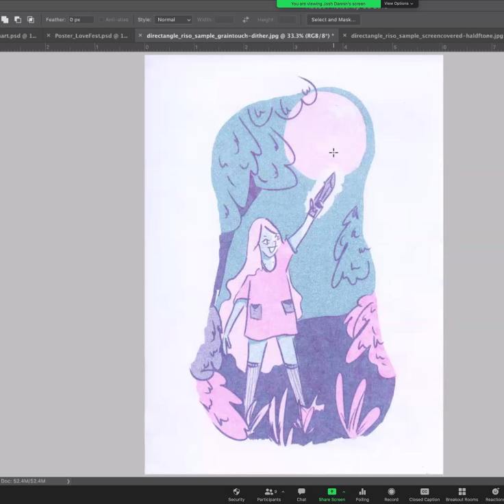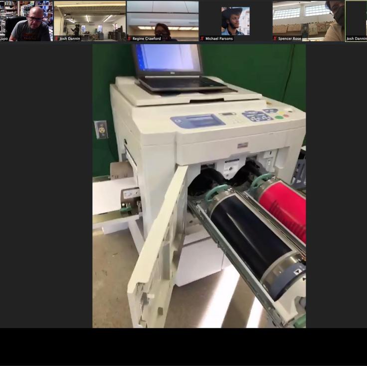 Really excited to share that Josh Dannin and Directangle Press is going to print the final projects for my Adv Printmaking class and graduate students! WVU is going virtual for the last two weeks of class, so to make sure that quality prints can still be made during this time, the WVU Printmaking Program is hiring Directangle Press to print editions of 25 risograph prints for each of my students! Tuesday, Josh gave us a tour of his shop and a detailed explanation of what a risograph machine is and how it works. Cannot wait to see how all this comes together, and I am super grateful to Josh for being up for this challenge! Stay tuned!
