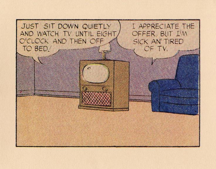 I found this image from an old “Little LuLu” comic which not only references my hour of the day (8PM), but also references the fact that throughout this pandemic there have been many times I was OVER watching TV to end the day…