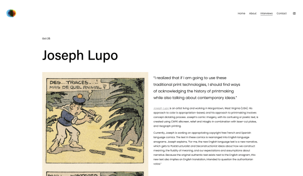 I am very excited to share this spotlight of my work on the Reflections on Color and Printmaking page! Reflections on Color and Printmaking is a fantastic website archive of interviews organized by Laura Berman, a printmaker that I have a massive amount of respect for. A big thank you to Laura for your interest... Continue Reading →