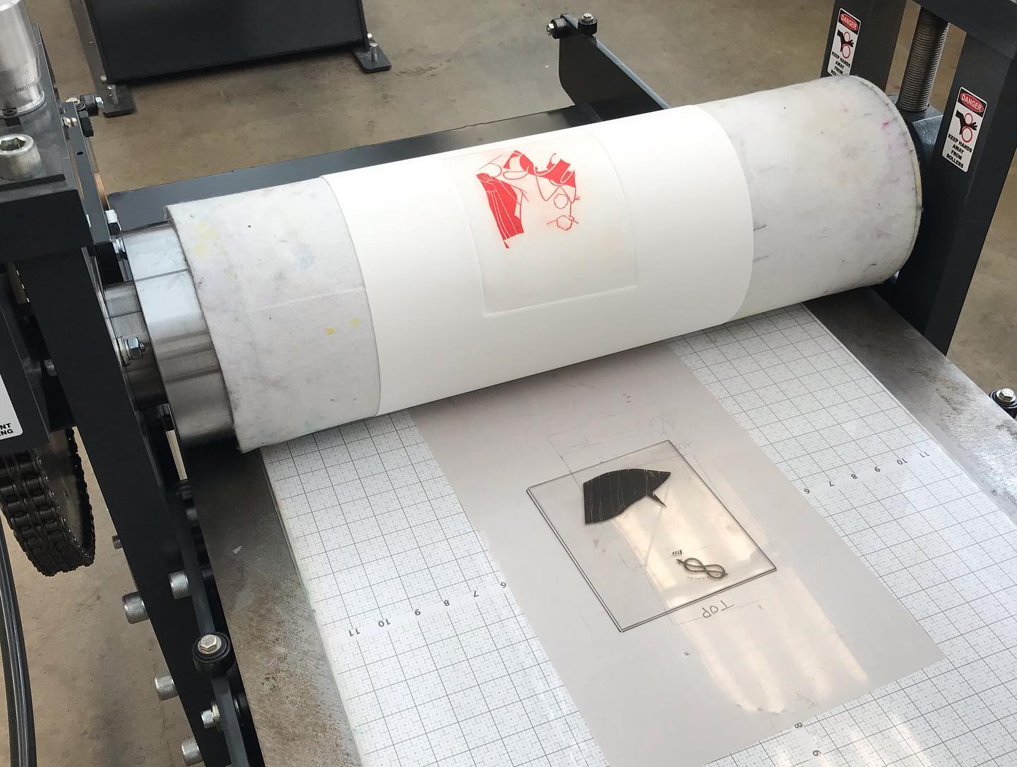 We made a two color acrylic plate intaglio print on the laser cutter, and we laser cut the same image into two blocks of linoleum! So much fun to proof these up and see the results.