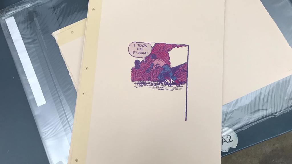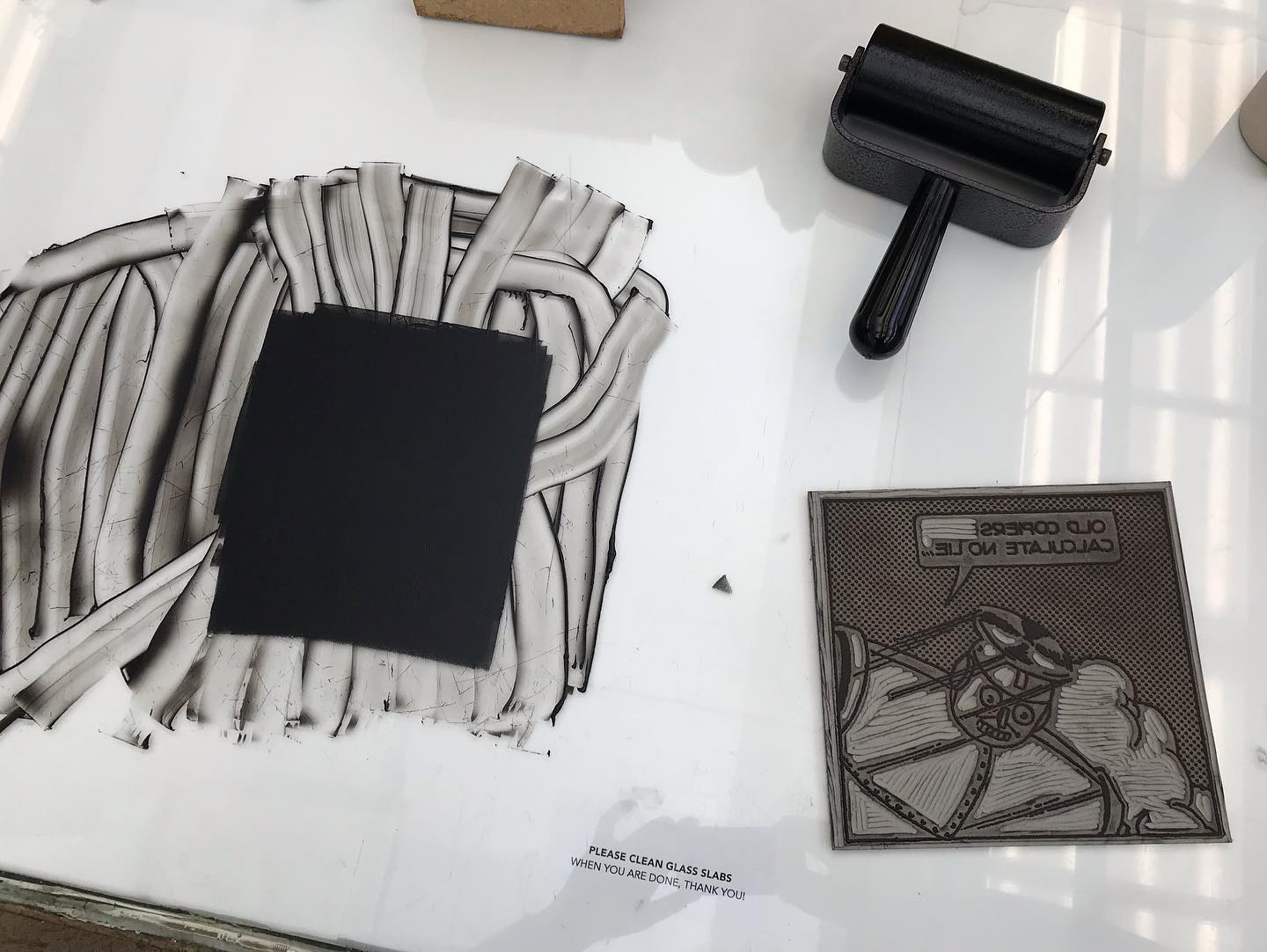 This series of prints uses copyright free comics from the early 20th century and uses appropriated text to construct English language anagrams. While the relationship between the image and anagram text can be absurd, sometimes fitting, enigmatic, or even poetic, it is always meant to be read as a new narrative. This process uses systems to create an alternative reality from a cultural artifact that was meant to be complete and thought to be concrete. My work relates to Poststructuralist and Deconstructionist ideas about how we construct meaning, the fluidity of meaning and language, and our expectations and assumptions about how narratives and stories are constructed.