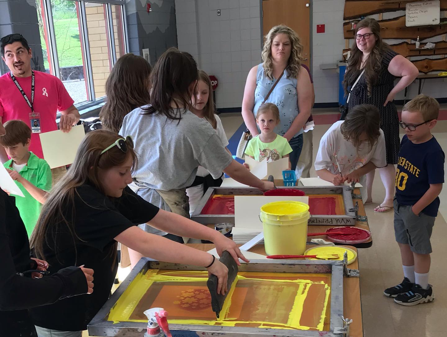 We had a great night of screen printing with families at Mylan Park Elementary! We seemingly had a line that just never needed. It is always fun to see the surprise and joy when kids run a print for the first time! A huge thank you to BFA printmaker Caitlynn Buckler for taking time out of their summer to help out tonight. Always glad to be a part of the wonderful community at Mylan Park Elementary!